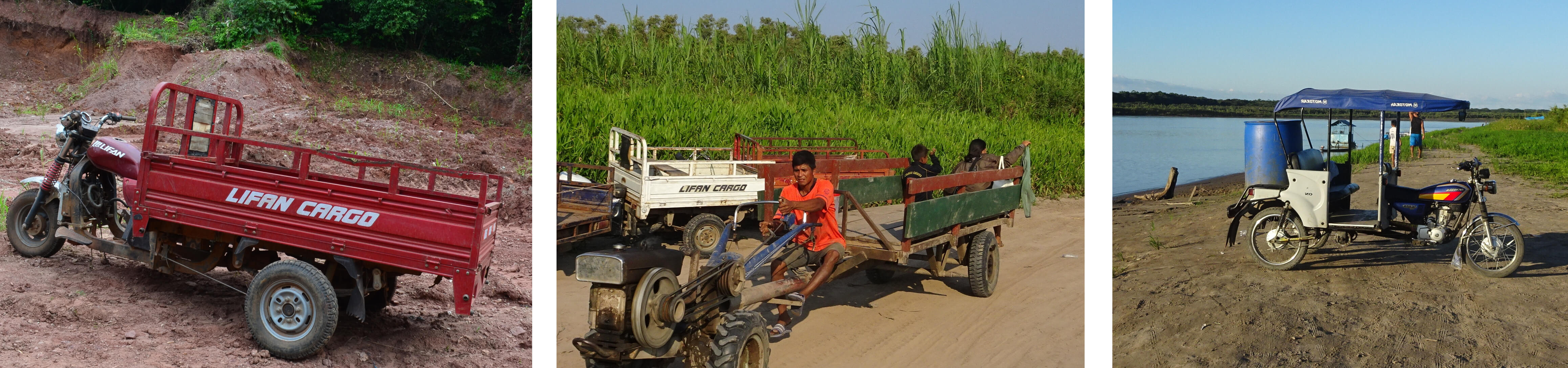 A striking trend we observed on this trip is the recent and widespread adoption of small motors and cell phones, which are changing life in the region. Small motors have been used as boat engines and in chainsaws at least since the 1960s, but only the wealthiest people could afford them, using them to run a colectivo, to fish, or for logging (Bergman 1980; Hiraoka 1985). The motors we found on our trip are as low-tech as those from the 1960s, but as a result of the 2010 China-Peru Free Trade Agreement, which removed tariffs on imports of small motors and motorized equipment, Peru has been flooded with very affordable small motors. A 5.5 hp peque-peque engine can be purchased new in Pucallpa for as little as $100, and less if second-hand; about one-fifth of the cost of a motor in the early 2000s (Figure 18). According to residents from a community close to Pucallpa, it is possible to earn enough money to buy a peque-peque from one or two good nights of fishing, or from profits from a good harvest. Another significant advantage of these motors is that they can be repaired with simple tools and limited mechanical knowledge. Beyond boats and chainsaws, small motors are widely used today to power motokars, cargo rickshaws (furgones), and rudimentary wagons locally known as Kubotas, portable sawmills, water pumps, weed-eaters, threshers, generators, among other things that are easing life for people (Figure 19). Even in small communities everyone seemed to have a peque-peque, something that was rare only 15 years ago; shop owners carry stock of gasoline and replacement parts, and some, as in San Cristobal, sold the motors locally.