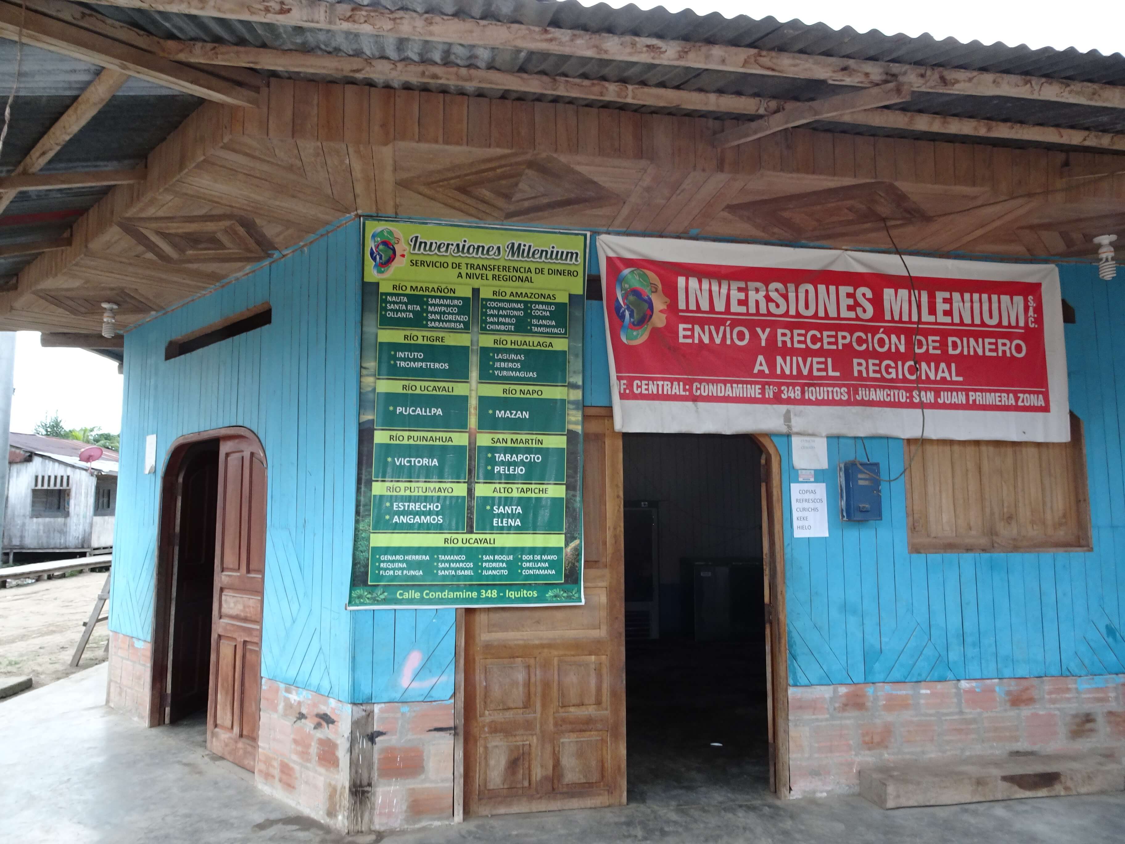 But most striking for us was to find an emergent money transfer scheme linked to cell phones. In a region where cash is scarce, it seemed unimaginable that we would encounter ads posted outside of stores, offering quick, safe and reliable money transfers within Loreto, Ucayali and San Martín, as we walked the streets in small towns such as Bretaña, Juancito, San Roque and Victoria, among others (Figure 23). At least five companies were offering such services, one of them covering more than 40 communities and towns in Loreto alone. We learnt about how the service works from Don José (pseudonym), a local contact in Bretaña, close to the PSNR and the site of a recent violent confrontation with police forces after the occupation of an oil facility by local indigenous peoples (Fernández Calvo 2020). According to Don José, someone wishing to send money would come to him with the desired amount to transfer and the name and location of the receiver. He would then contact a partner merchant in the destination community (or a central office) using his cell phone, with the instruction to pay out the money to that person al toque (on the spot), charging 10 S/. ($4) for transfers of up to 1000 S/. ($400). Like Western Union, this type of service is likely important for transferring remittances but given its less formal nature there is concern that it could be used for money laundering and to finance illegal activities. Based on our conversations with locals, we think habilitadores in the city may use these cellphone-based money transfers to finance extractive activities by rural households at scales unseen before.